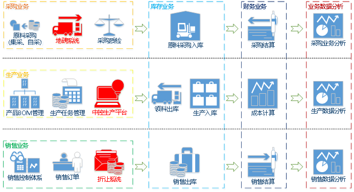 ●實現(xiàn)企業(yè)業(yè)務流程化(huà),将企業(yè)管理(lǐ)過程中的(de)采購(gòu)、質檢、生(shēng)産、庫存、銷售∞、成本等業(yè)務進行(xíng)流程化(huà)整合,并通(tōng)過可(kě)以聯查的(de)業(yè)務流程,實現(xiàn)對(duì)關鍵業(yè)務節點的(de)管控,提♠高(gāo)業(yè)務運轉效率。