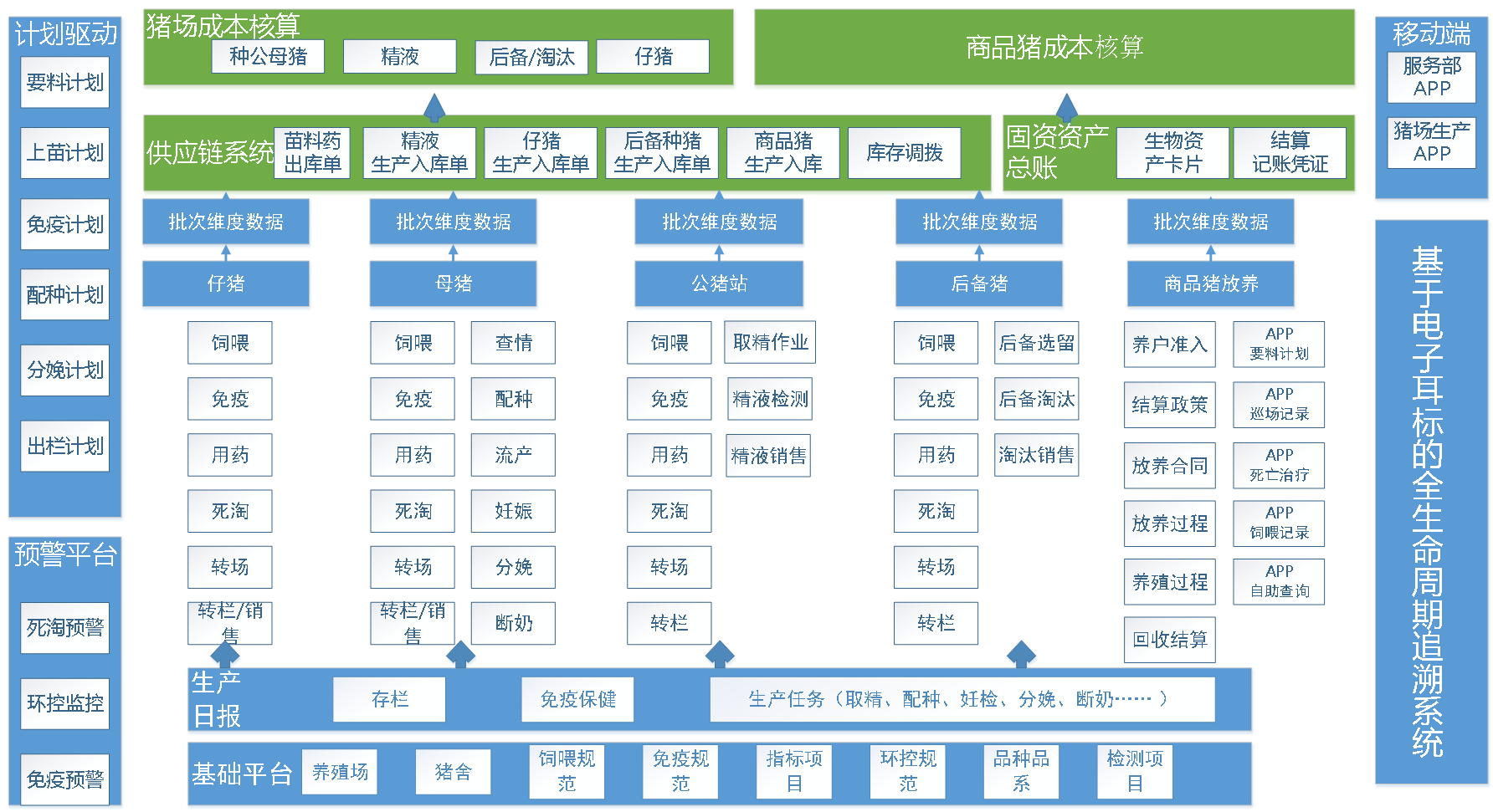 ●全生(shēng)命周期追溯體(tǐ)系:通(tōng)過豬隻在養殖過程中不(bù)同階段的(de)數(shù)據記錄與分(fēn)析,形成豬隻檔案及豬隻批次檔案,記錄每個(gè)過程的(de)具體(tǐ)數(shù)據,真正搭建☆集團全生(shēng)命周期追溯體(tǐ)系;