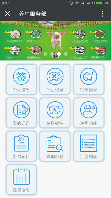 由于農(nóng)戶手機(jī)使用(yòng)的(de)型号,系統以及♣年(nián)齡和(hé)教育水(shuǐ)平等參差不(bù)齊,所以在養戶中推廣獨立APP難度較大(dà),我們在微(wēi)信端開(kāi)發了(le)服務于養戶以及公司養戶管理(∞lǐ)員(yuán)(技(jì)術(shù)員(yuán))的(de)輕應用(yòng),養戶可(kě)在微(wēi)信"上(shàng)直接登錄綁定,申請(qǐng)日(rì)常的(de)飼料和(hé)藥品,以及查詢自(zì)己的(de)申請(qǐng)進度,檔案信息、在養以及已出欄♠的(de)批次和(hé)結算(suàn)信息,以及日(rì)常養戶所需的(de)分(fēn)析報(bào)表,讓養戶切身(shēn)的(de)參與到(dào)現(xiàn)代ε化(huà)移動化(huà)養殖過程互動。