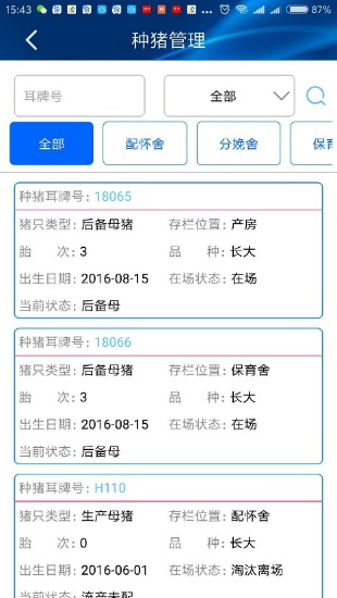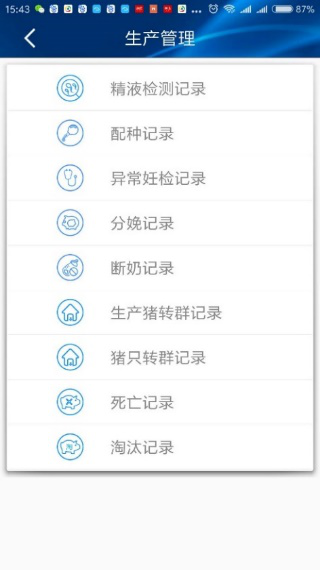 在APP內(nèi)直接實時(shí)查看(kàn)豬場("chǎng)檔案以及仔豬批次檔案,并可(kě)在移動端直接處理(lǐ)日(rì)常所有(yǒu)工(gōng)作(zuò∏)環節,主要(yào)包括:種豬管理(lǐ),批次管理(lǐ),生(shēng)産管理(lǐ),公豬業(yè) 務,母豬業(yè)務,轉群業(yè)務,死淘業(yè)務等業(yè)務管理(lǐ)。