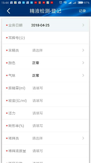 ●自(zì)營豬場(chǎng)-種公豬管理(lǐ):對(duì)種公豬養殖過程中的(de)飼喂信息、免疫信息、死淘信息、轉欄信息、取精作(zuò)業(yè)信息、精液檢測信息進行≥(xíng)管理(lǐ),可(kě)在移動端直接操作(zuò);