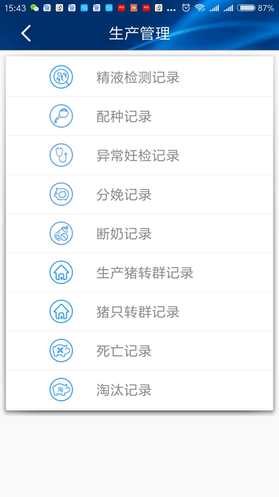 ■養殖業(yè)務:通(tōng)過平台實現(xiàn)全過程業(yè)務操作(zuò),主要(yào)包括精液采集檢測、配種、妊檢、分(fēn)娩、斷奶、生(shēng)産豬轉群和(hé)批次豬隻轉群、以及豬♦場(chǎng)發生(shēng)的(de)死亡和(hé)淘汰記錄等.