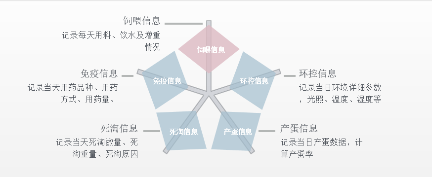 4、商品禽自(zì)養管理(lǐ):實現(xiàn)按“批次+棟舍”在整個(gè)♣階段(入欄、回收)進行(xíng)詳細養殖信息記錄(免疫、飼喂、用(yòng)藥、死淘、環控、轉欄)和(hé)成本分(fēn)析,跟'蹤成活率、育成死亡率和(hé)實時(shí)存欄和(hé)送孵統計(jì),打通(tōng)飼料端、孵化(huà)端和(hé)食品端,為(wèi)最終産品追溯提供養殖環節關鍵數(shù)據,同時(shí)做(zuò)到(dào)科(kē)學養殖;